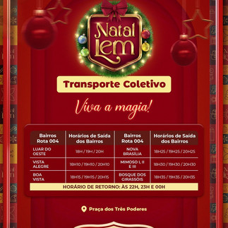 Prefeitura vai disponibilizar transporte gratuito nos dias do Natal LEM